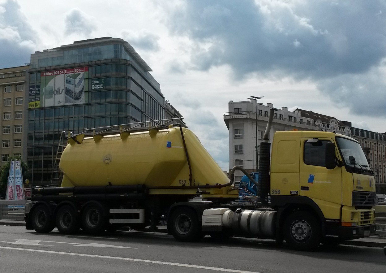 Ensuite passons du tracteur-dépanneur lourd MAN 373, qui assure depuis une quinzaine d'années le dépannage des autobus et des tramways sur le réseau de surface de la STIB, à l'aide de son bras élévateur (à l'avant) et de sa grue (à l'arrière). Il possède 4 essieux (comme on le voit très bien sur la photo) et a un poids à vide de 35 tonnes.